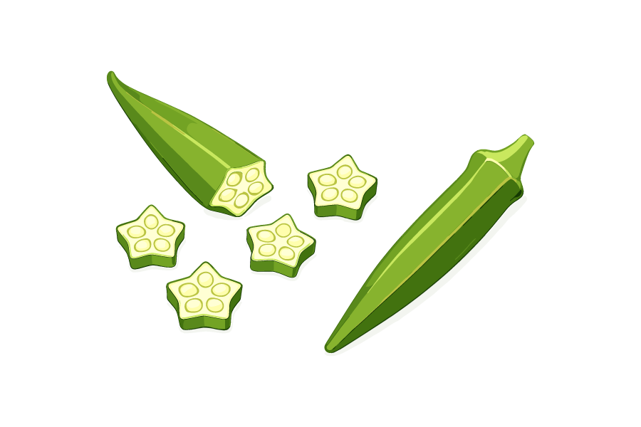 オクラ丸ごとと、カットしたオクラの組み合わせをイラストにしました。