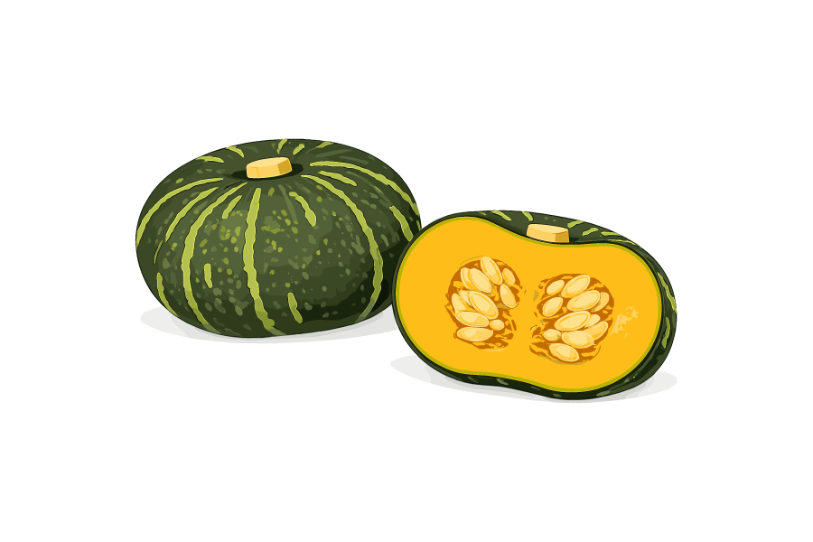 カボチャ丸ごとと、カットしたカボチャの組み合わせをイラストにしました。