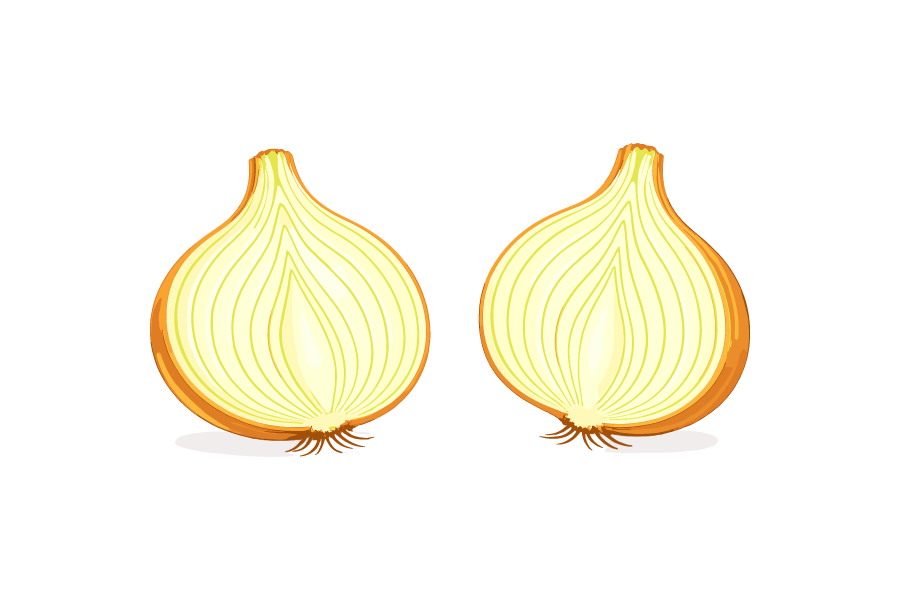 玉ねぎ丸ごとと、半分にカットした玉ねぎの組み合わせをイラストにしました。