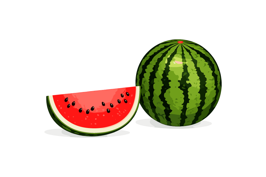 スイカ丸ごとと、カットしたスイカの組み合わせをイラストにしました。