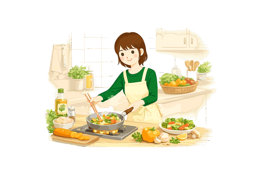 料理をしている女性のイラスト素材