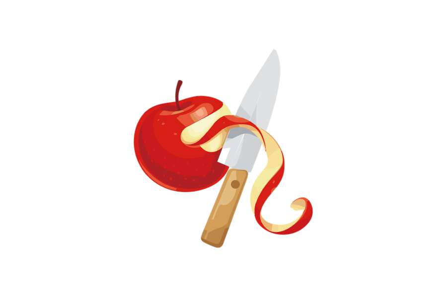 果物ナイフで、りんごの皮を剝いている形をイラストにしました。