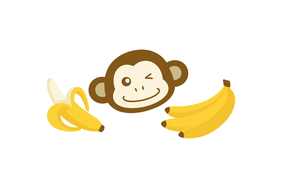 お猿さんの顔とバナナのイラストです。シンプルなイラストですのでいろいろな場面でぜひご活用ください。