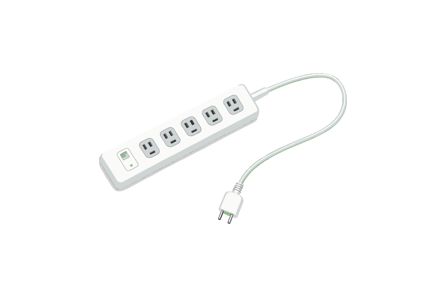 タコ足配線の際などに使われる、電源タップのイラストとなります。