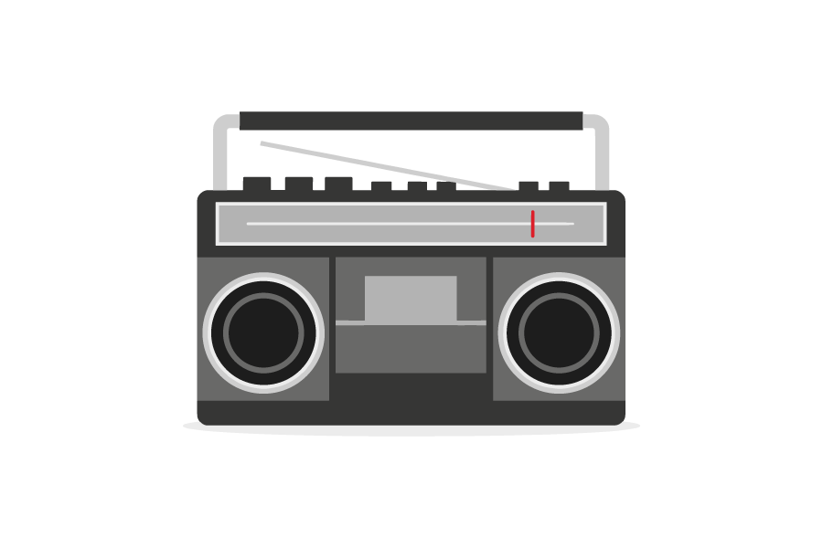 ラジオとカセットテープを再生する、ラジカセをイラストにしました。