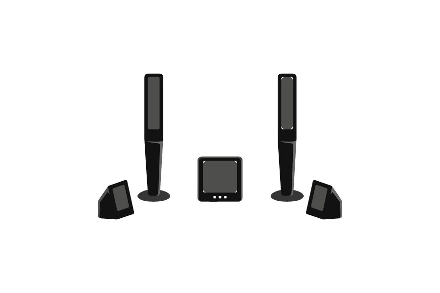 家庭用などのサウンドスピーカーセットをイメージしたイラストとなります。