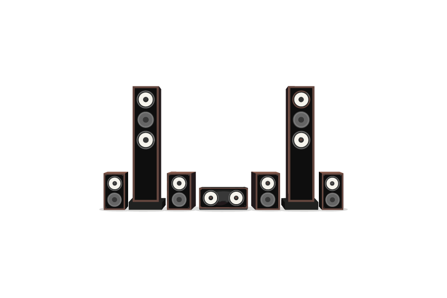 家庭用などのサウンドスピーカーセットをイメージしたイラストとなります。