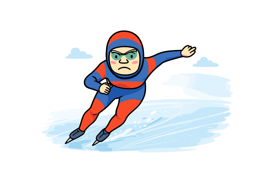 スピードスケート選手の滑走シーンを表現したベクター素材です。無料・商用利用可で、Web制作、ブログ、広告、資料作成など幅広い用途に対応。冬季スポーツや競技紹介、教育コンテンツに使いやすいイラストです。