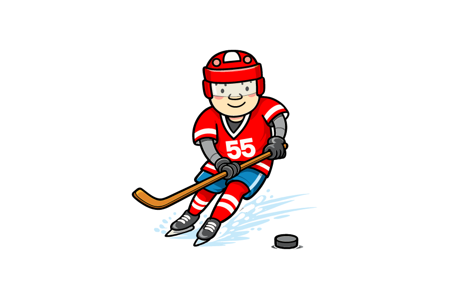 アイスホッケー選手のプレーシーンを描いたシンプルなベクター素材です。無料・商用利用可で、Web制作、ブログ、広告、資料作成など幅広い用途に対応。スポーツイベントや冬季競技のコンテンツ制作に使いやすいイラストです。
