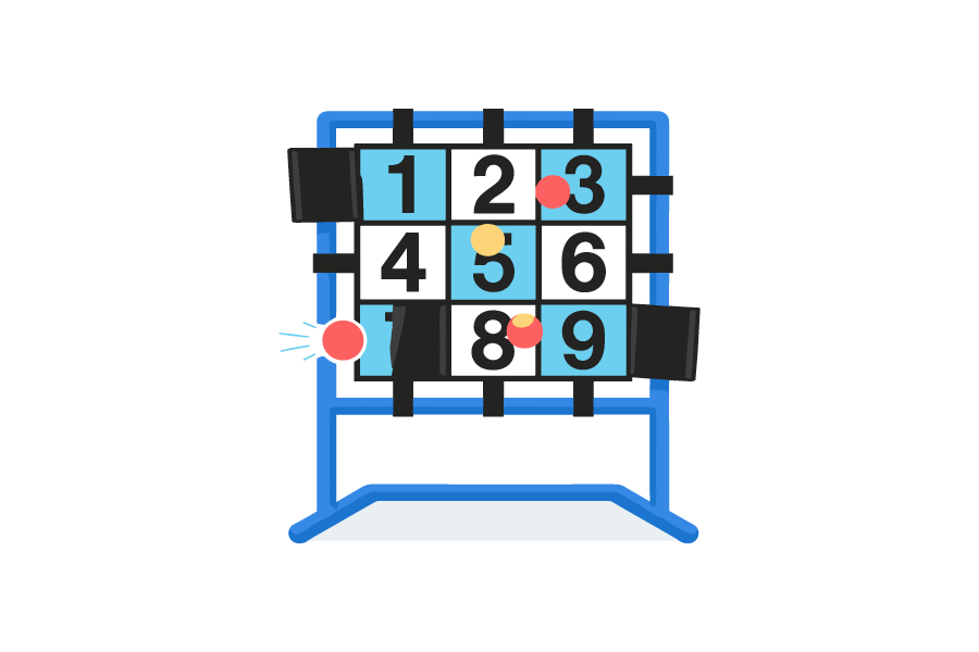 ストラックアウトのゲームを表現したベクター素材です。無料・商用利用可で、Web制作やブログ、広告、学校資料、イベントチラシなど幅広い用途に活用できます。運動会やレクリエーションのイメージに使いやすい、シンプルで視認性の高いイラスト素材です。