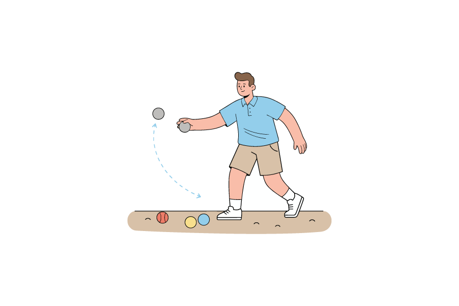 ペタンクを楽しむ人物を描いたシンプルなベクター素材です。無料・商用利用可で、Web制作やブログ、広告、資料作成など幅広いシーンに活用できます。やわらかな配色と見やすい構図で、スポーツやレクリエーション関連のコンテンツに最適なイラストです。