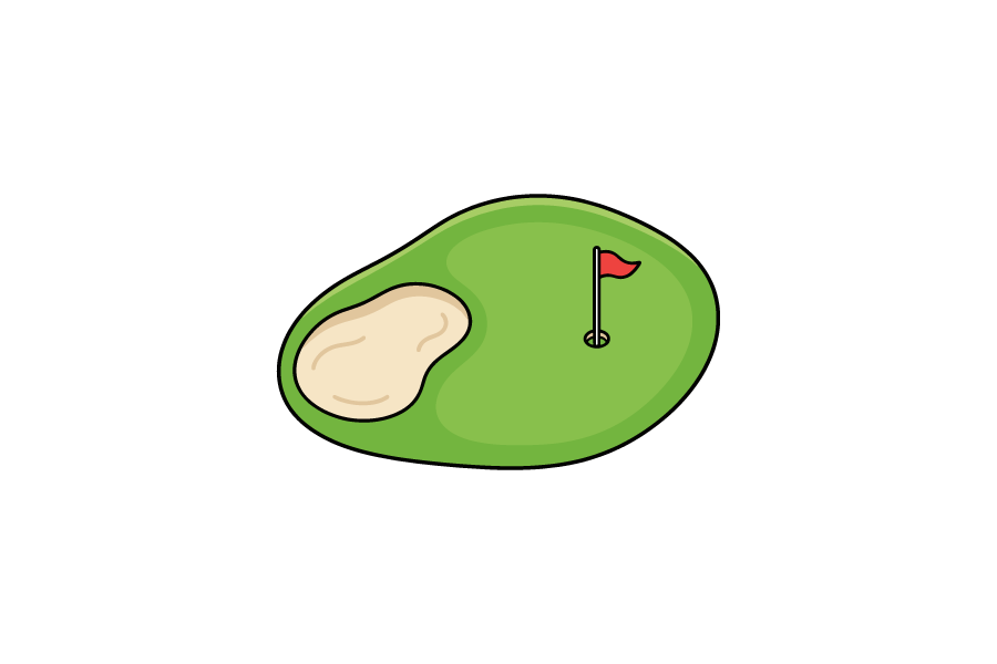 ゴルフ場のグリーンをイメージしたシンプルなイラストです。無料で商用利用可のベクター素材として、Web制作、ブログ、広告、スポーツ資料やチラシなど幅広く使用可能。視認性が高く、ゴルフやレジャー関連コンテンツに使いやすいデザインです。