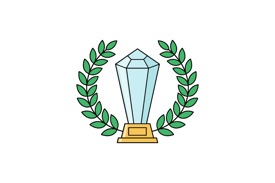 月桂樹とクリスタルのトロフィーのイラスト