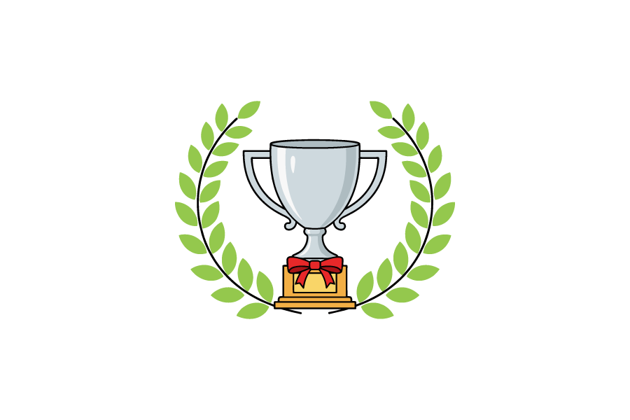 月桂樹と銀のカップを組み合わせた表彰イメージのイラストです。無料で商用利用可のベクター素材として、Web制作、ブログ、広告、賞状やランキング資料など幅広い用途に対応。受賞・成功・大会関連コンテンツに使いやすいシンプルなデザインです。