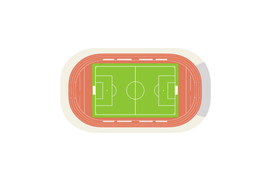競技場・スポーツスタジアムを俯瞰で描いたシンプルな無料イラストです。商用利用可のベクター素材で、Web制作やブログ、広告、資料、スポーツ関連コンテンツなど幅広いシーンに活用できます。見やすく使いやすいフラットデザインの素材です。
