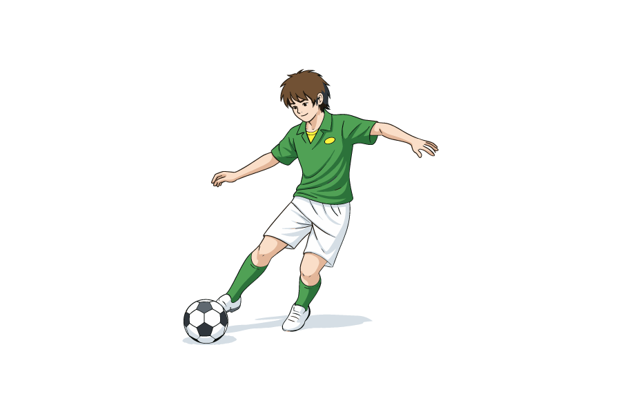 サッカーでパスを出そうとする少年を描いた無料のベクター素材です。商用利用可で、Web制作、ブログ、広告、資料などスポーツや学校関連のデザインに最適。チーム紹介や試合案内、教材やイベント告知など幅広いシーンで使いやすいシンプルなイラストです。