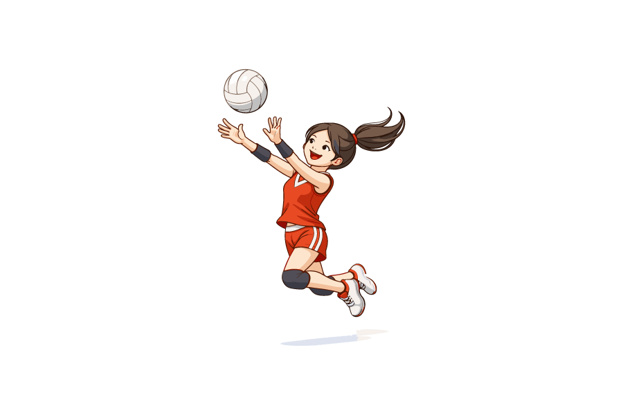 バレーボールをしている女性学生のイラスト