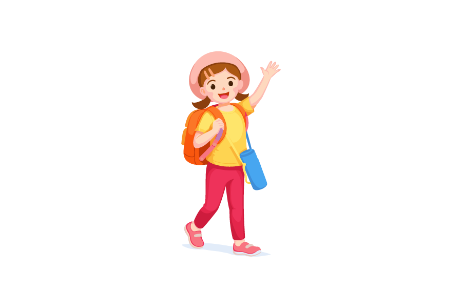 遠足でリュックサックと水筒を持つ女の子を描いた無料のベクター素材です。商用利用可で、Web制作、ブログ、広告、資料など学校や行事関連のデザインに最適。遠足案内や教育コンテンツ、イベントチラシにも使いやすいシンプルなイラストです。