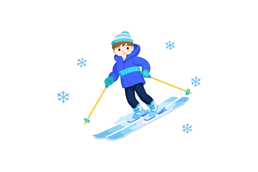 スキーを楽しむ男性を描いたシンプルで使いやすいベクター素材です。無料で商用利用可のため、Web制作やブログ、広告、学校資料、チラシなど幅広い用途に対応します。冬のスポーツやレジャー関連コンテンツに最適な、清潔感のあるイラストです。