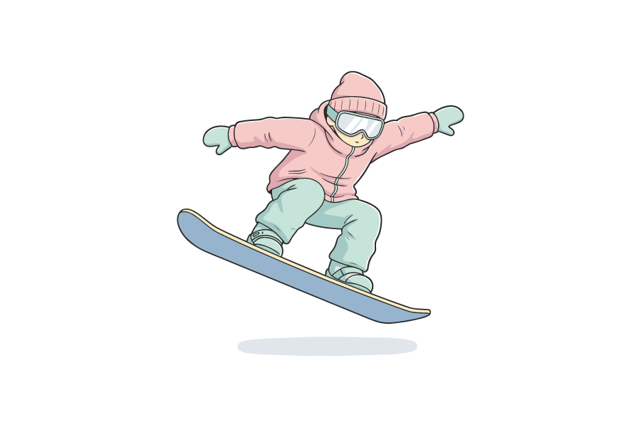 スノーボードを楽しむシーンを描いたイラスト素材です。シンプルで使いやすい無料・商用利用可のベクター素材として、Web制作、ブログ、広告、資料、冬のスポーツ特集やイベント案内など幅広い用途に活用できます。スポーツ関連コンテンツに最適なデザインです。