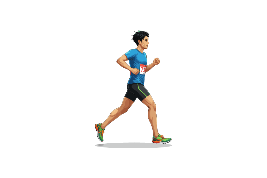 陸上マラソンを走る男性選手のイラストです。無料で商用利用可のベクター素材として、Web制作やブログ、広告、資料など幅広いシーンで活用できます。シンプルで使いやすいデザインのため、スポーツ関連コンテンツや大会案内、トレーニング紹介などにも最適な素材です。