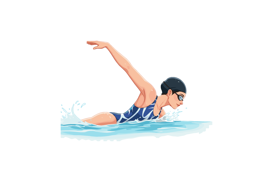 水泳の背泳ぎをしている人物を描いたイラストです。無料で商用利用可のベクター素材として、Web制作やブログ、広告、資料など幅広い用途に対応します。スポーツや健康、学校教材、水泳教室の案内などにも使いやすい、シンプルで汎用性の高い素材です。
